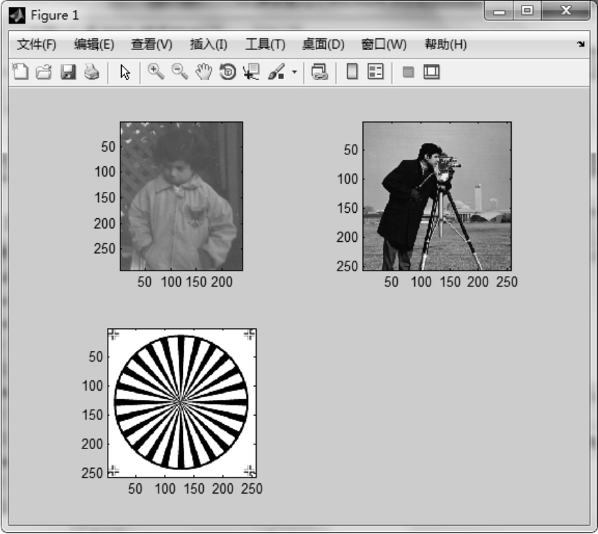 图1.25 显示三幅灰度图像并返回图像句柄