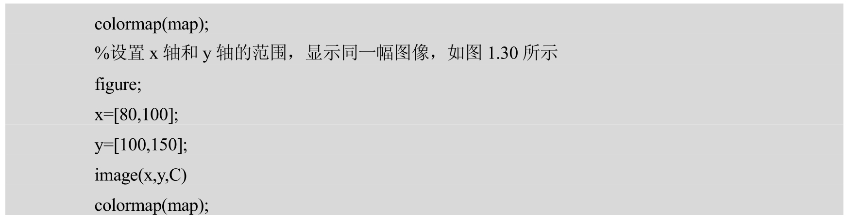 【实例2】 显示MATLAB自带的索引图像,设置x轴和y轴的范围。