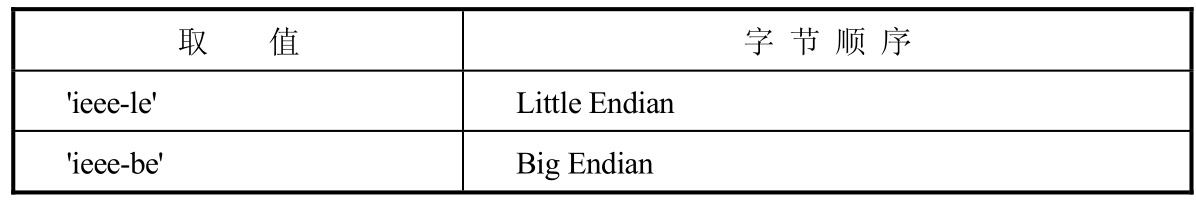 ·info=analyze75info(filename,'ByteOrder',endian) 从指定的analyze7.5数据集头文件中按指定字节顺序读取数据信息。字符串参量endian指定字节顺序,取值参见表1.7。