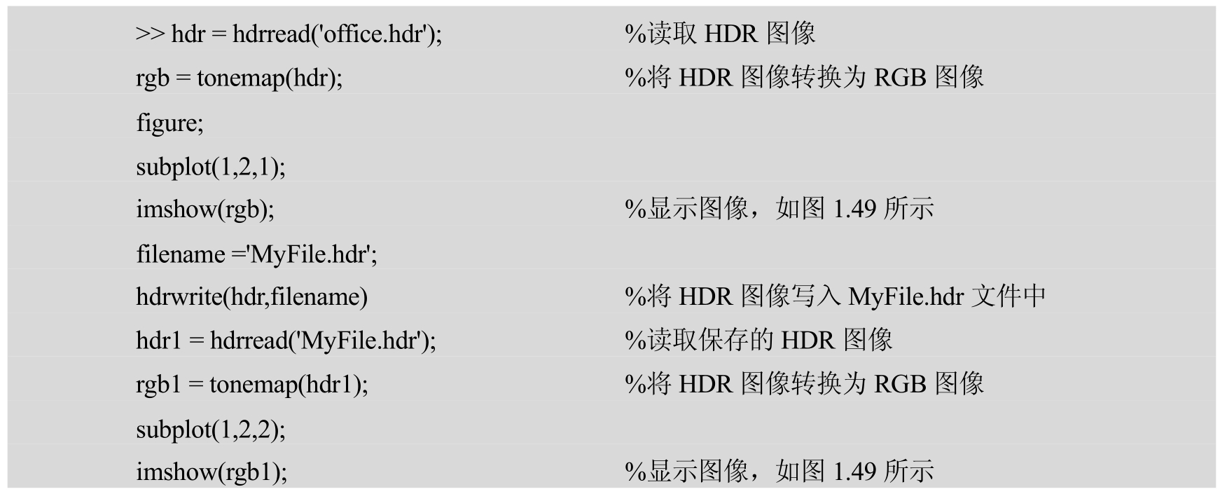 图1.49 读取HDR图像并将其保存至MyFile.hdr文件中