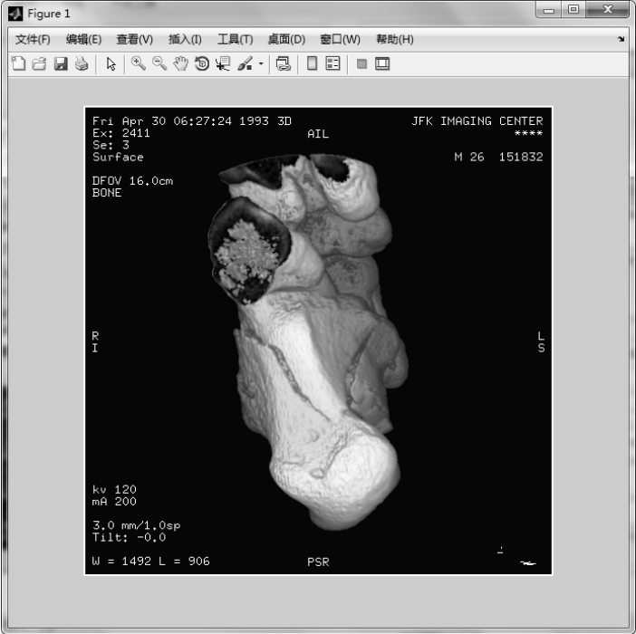 【实例1】 从analyze 7.5数据集图像文件中读取图像数据,analyze 7.5格式文件由用户自己创建,可以从http://www.radiology.uiowa.edu/downloads/下载。