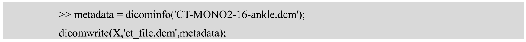 【实例2】 从DICOM文件中获取元数据信息,然后将元数据中的图像写入ct_file.dcm文件中。