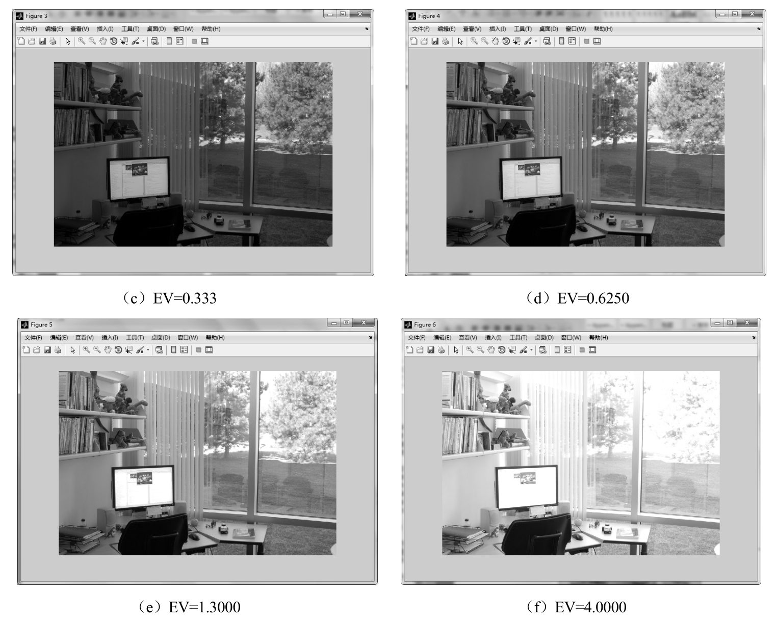 【实例】 从6幅低动态图像序列中生成高动态范围图像,6幅图像具有相同的f/stop数和不同的曝光时间。