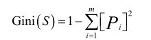 设 S 为具有 s 个样本的数据集,所有样本总共包含 m 个不同的类别 C i , i∈{1,2,…,m},那么Gini指标为: