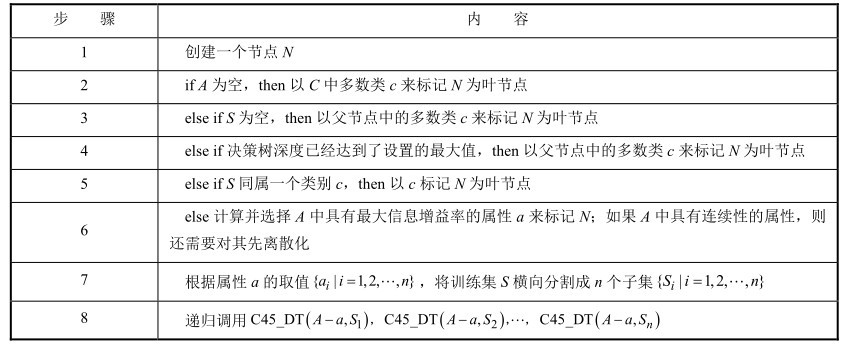 C4.5算法建树步骤 [13] 如表3-4所示。