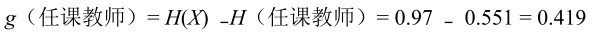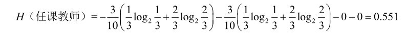任课教师属性:甲3个(这3个中C课程1个合格,2个不合格),乙3个(这3个中C课程1个合格,2个不合格),丙2个(这2个C课程都是合格),丁2个(这2个C课程都是不合格)。可以计算H(任课教师):