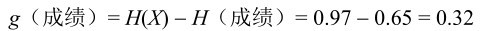 从表3-3可以看出,C 课程合格的为4个,C 课程不合格的为6个。所以利用H(X)=plog 2 (p)(1-p)log 2 (1-p)可以计算H(X):