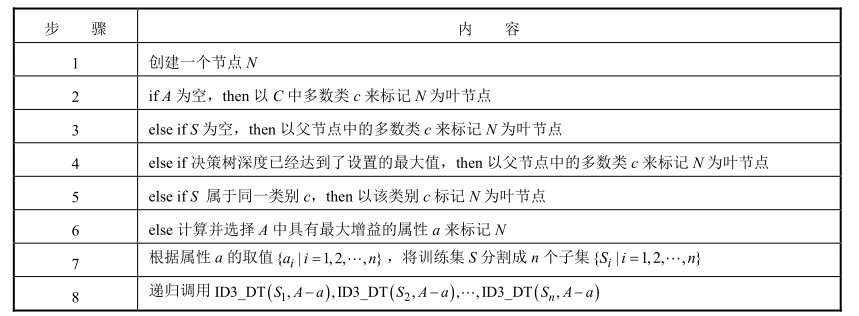 ID3算法生成决策树的步骤 [13] 如表3-2所示。