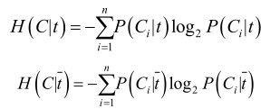 就是T不出现的概率。结合信息熵的计算公式,可得:
