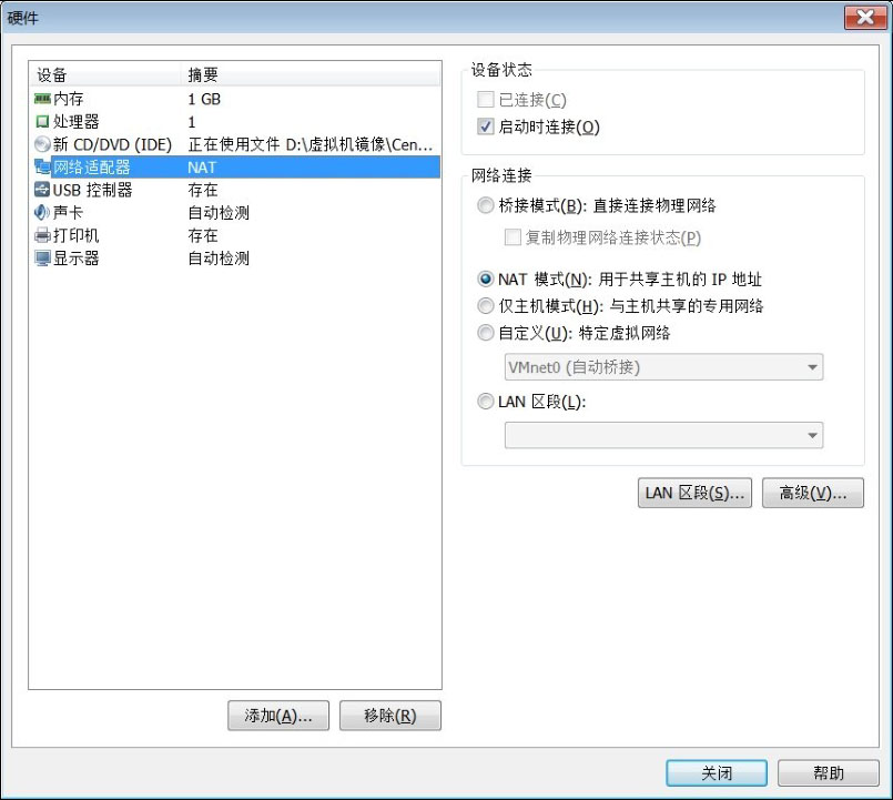 ●LAN区段:这是新版VMware新增的功能,类似于交换机中的VLAN(虚拟局域网),可以在多台虚拟机中划分不同的虚拟网络。