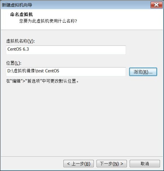 单击“下一步”按钮,进入“命名虚拟机”界面,给虚拟机起一个名字,如“CentOS 6.3”或“PlayBoy”之类的,然后单击“浏览”按钮,选择虚拟机系统安装文件的保存位置,如图2-6所示。