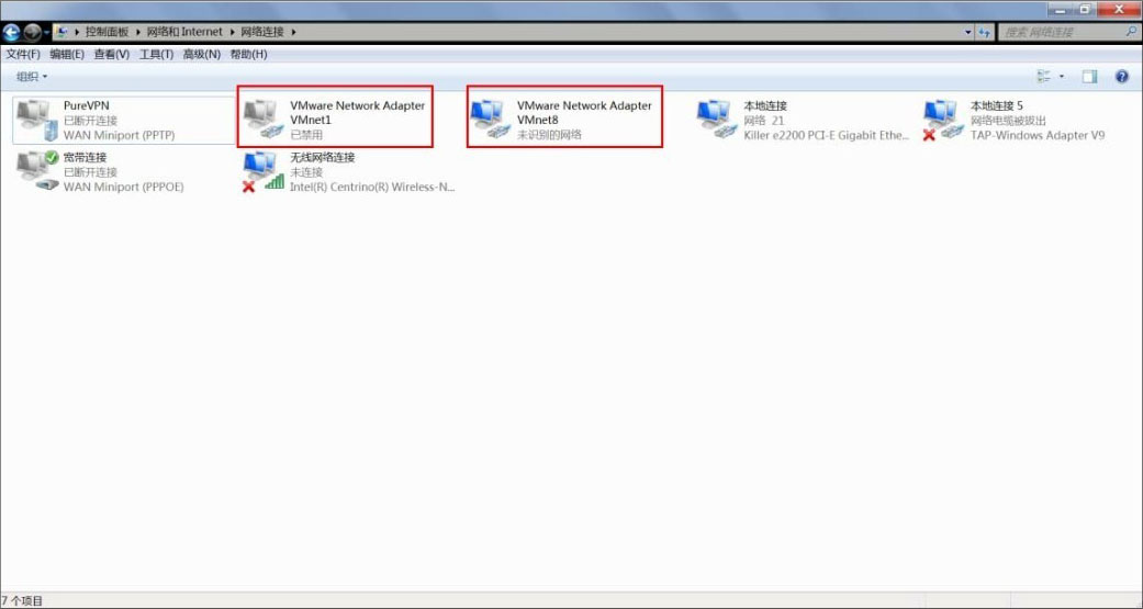 以上对于VMware网络的描述,读者看完了可能会有点困惑。简单总结一下:在VMware安装好后,会生成两个虚拟网卡——VMnet1和VMnet8(在Windows系统的“网络连接”中可以查看到),如图2-12所示。