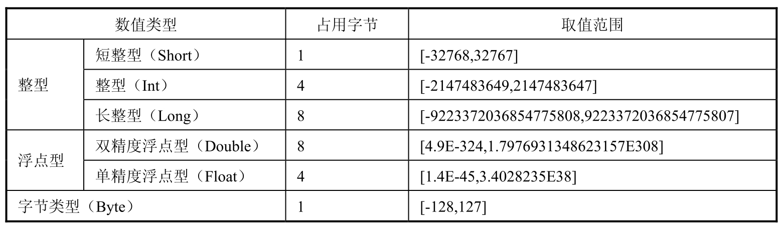Kotlin的数值类型如表2-1所示。