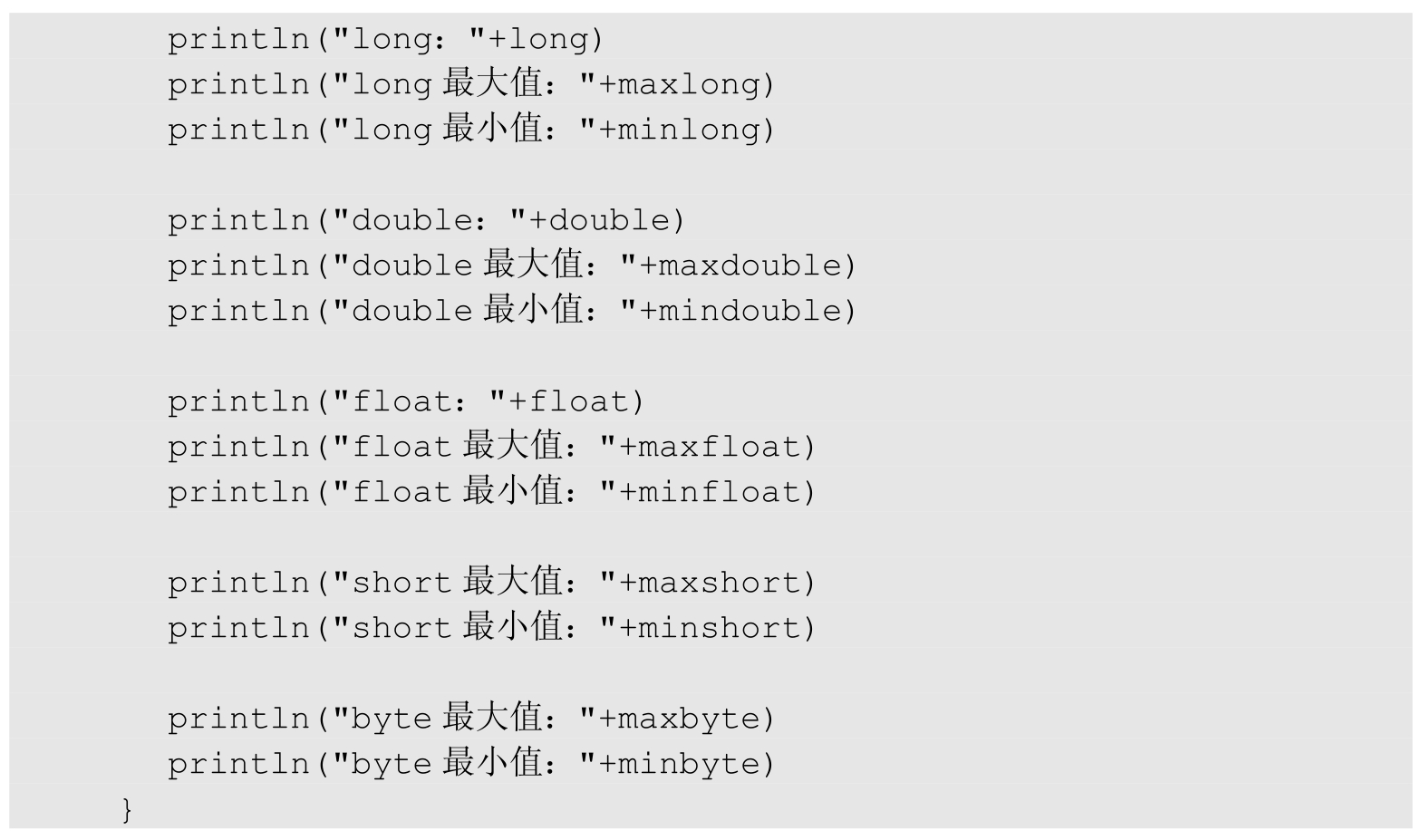 在Kotlin中常见的字面常量有: