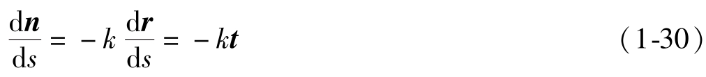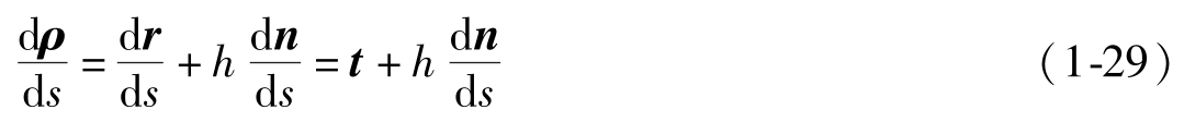 设t为S上沿主方向的单位切矢量,若令ds为S上沿这个方向的曲线弧长的微分,则由式(1-28)可得