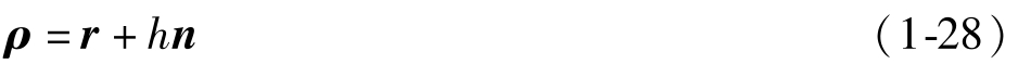 设有两个曲面S和S h ,如果S上的任意点P在S h 上都有一点P h 与之对应,而且对应点的连线PP h 是S和S h 的公法线,PP h 的长度h是一定的,即S和S h 之间的距离h处处相等,我们就称S和S h 是等距曲面,如图1-14所示。