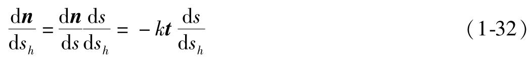 其中,k为曲面S在P点的沿主方向t的主曲率,将式 (1-30) 代入式 (1-29),得