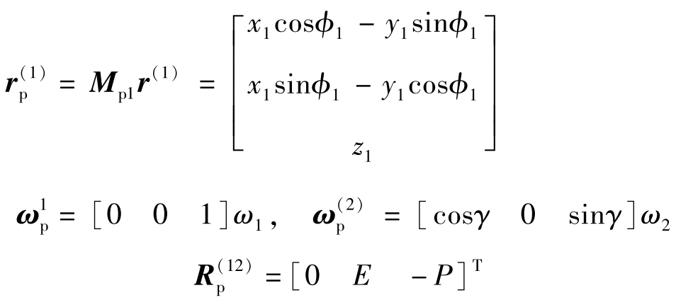 如果已知的量是r 1 坐标,则v (12) 在S p 坐标系中的表示会简单一些,这时各矢量表示如下: