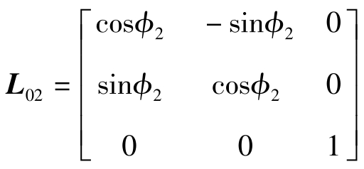 根据坐标转换关系可知,坐标系S 2 到S 0 的旋转变换矩阵为