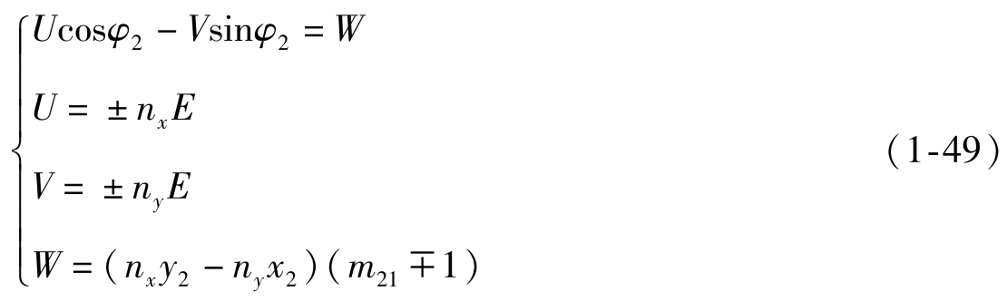 啮合方程一般都可化作式 (1-48)~式(1-51) 的形式。由式 (1-51) 可以解出φ