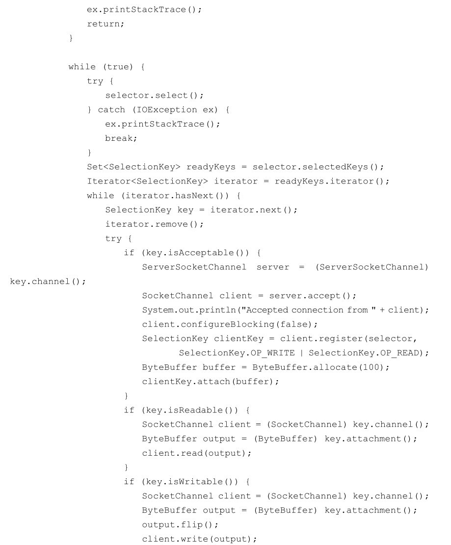 要使用Selector,得向Selector注册Channel,然后调用它的select()方法。这个方法会一直阻塞到某个注册的通道有事件就绪。一旦这个方法返回,线程就可以处理这些事件,比如新连接进来、数据接收等事件。