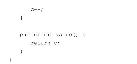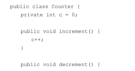 其中的increment方法用来对c加1;decrement方法用来对c减1。然而,在多个线程中都存在对某个Counter对象的引用,线程间的干扰就可能产生我们不想要的结果。