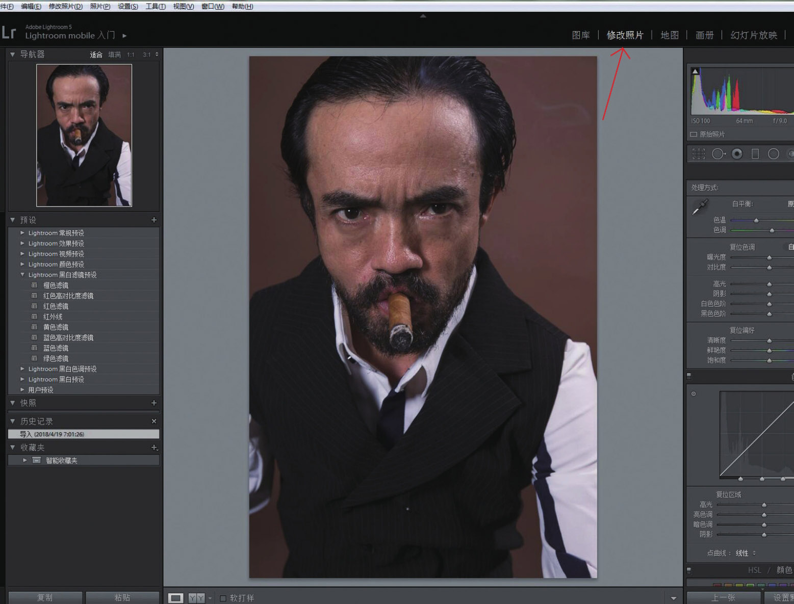 2. 刚才是在“图库”模块下进行的操作。现在,单击旁边的“修改照片”按钮。