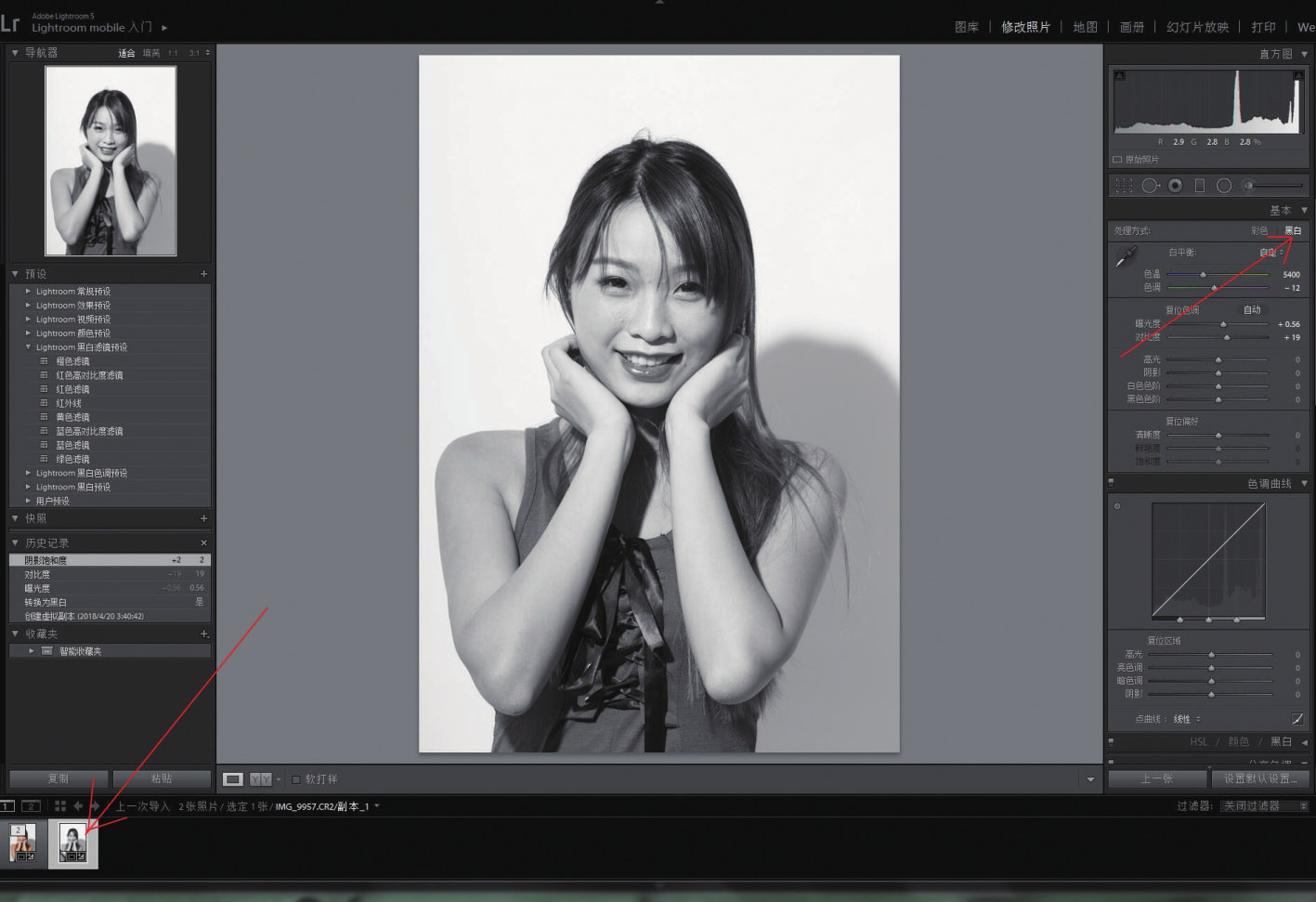 将黑白照片的曝光度提高并增加对比度,毕竟黑白照片玩的是影调。