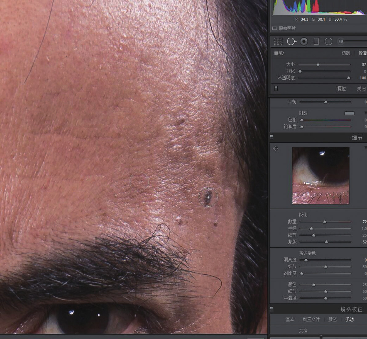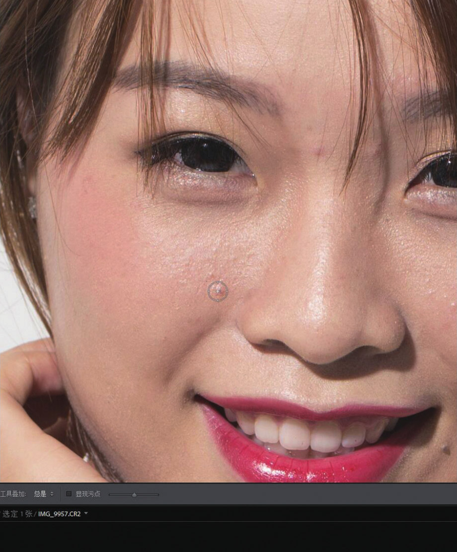 12. 去除脸上比较大的斑点。事实上,在Photoshop里修掉斑点会更快一些,在Lightroom里修掉更适合那些想快点出图发朋友圈的人。