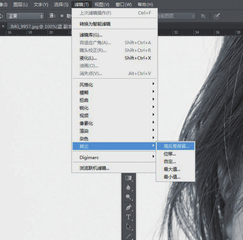 14. 在菜单栏执行“滤镜”/“其他”/“高反差保留”命令。
