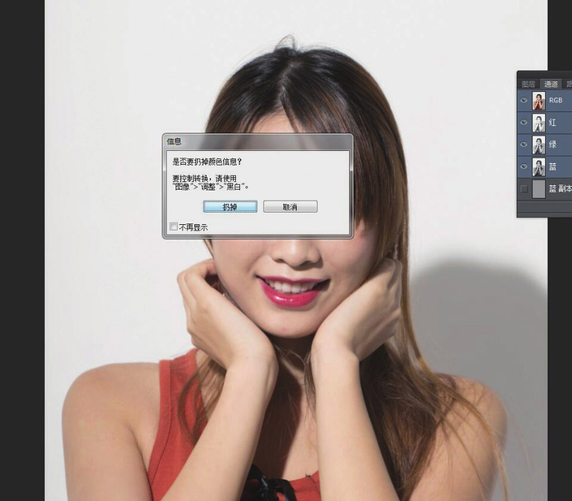 最后,合成图像,磨皮完成(注意,一定要把刚才创建的“蓝副本”通道和“Alpha”通道拖进右下角的“垃圾桶”,否则图片无法正常关闭)。