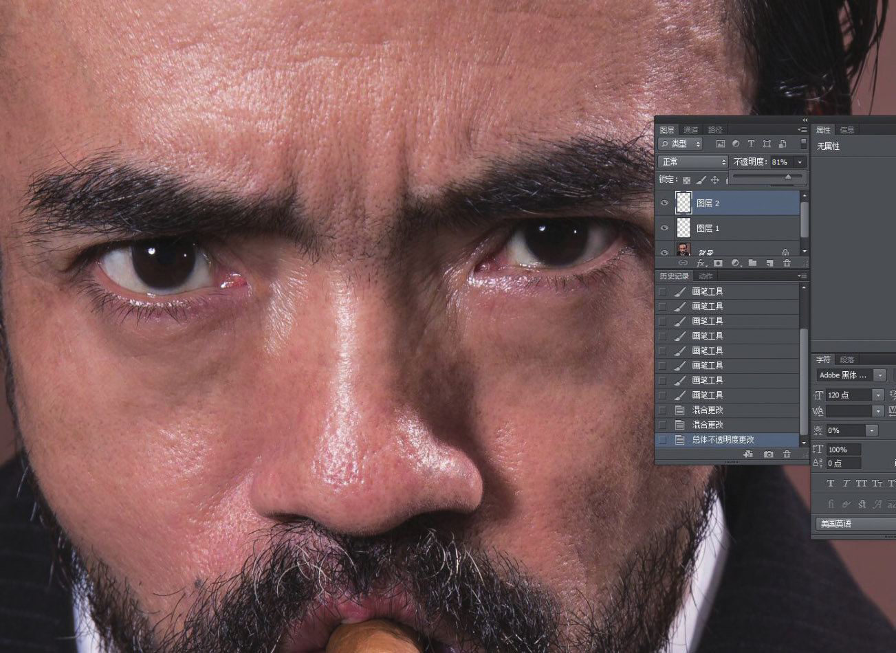 其实,摄影师没必要把修图师的工作给抢了。明星海报据我的合伙修图师阿展老师的工作速度,他要花一整天的时间(包括加班,大概十三四个小时)才能修完一张人脸。他会把人脸放大300%~400%,修掉每一个毛孔周围的脏点,但是保留毛孔。给人物去黑斑,面部重新塑型,重新刻画身上的光感,重新修头发外形……