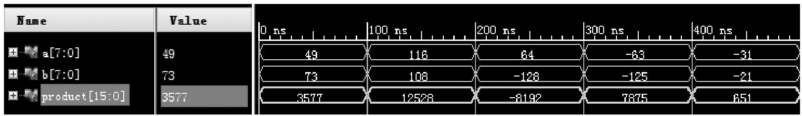 有符号整数乘法运算的仿真结果如图3.12所示。