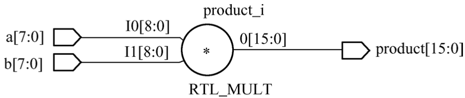 本节将使用VHDL和Verilog HDL语言实现有符号整数和无符号整数的乘法运算。整数乘法运算块的符号如图3.7所示。