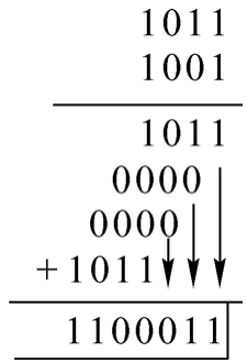 图3.8 4位无符号整数(1011) 2 =(11) 10 和(1001) 2 =(9) 10 乘法运算的实现原理