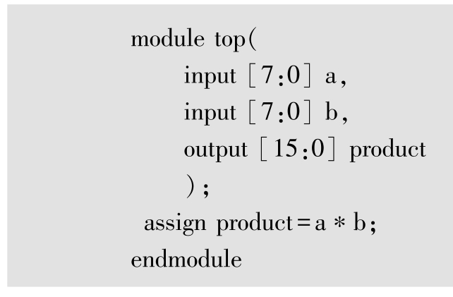 代码清单3-10 无符号整数乘法运算的Verilog HDL描述