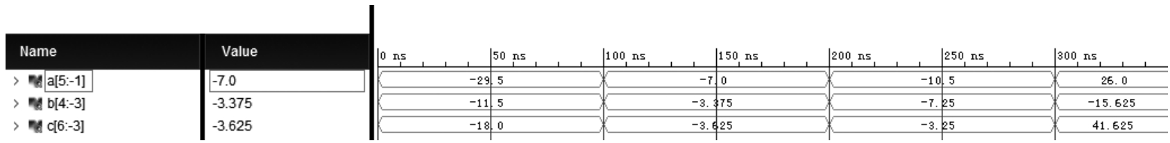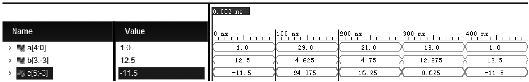 有符号定点数减法运算的仿真结果如图3.23所示。