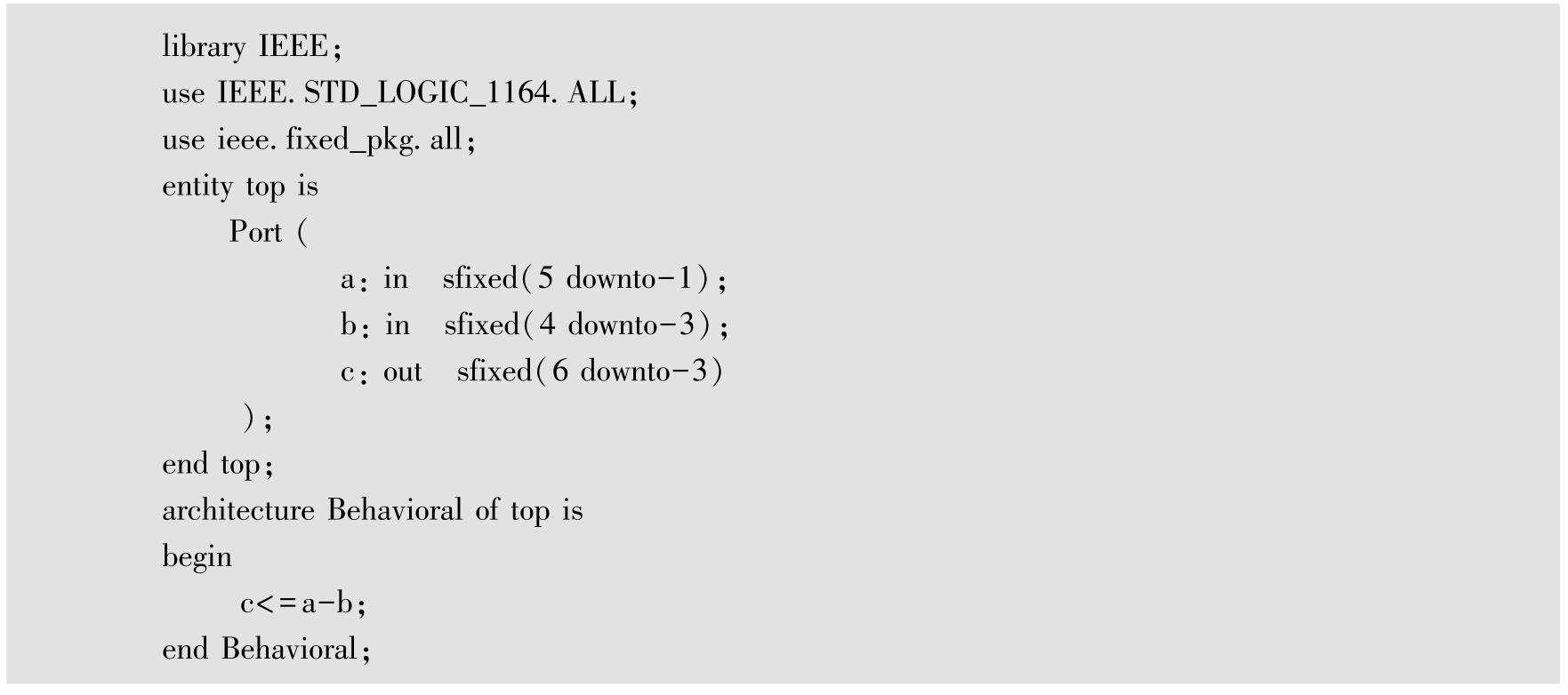 有符号定点数减法运算的VHDL描述如代码清单3-20所示。