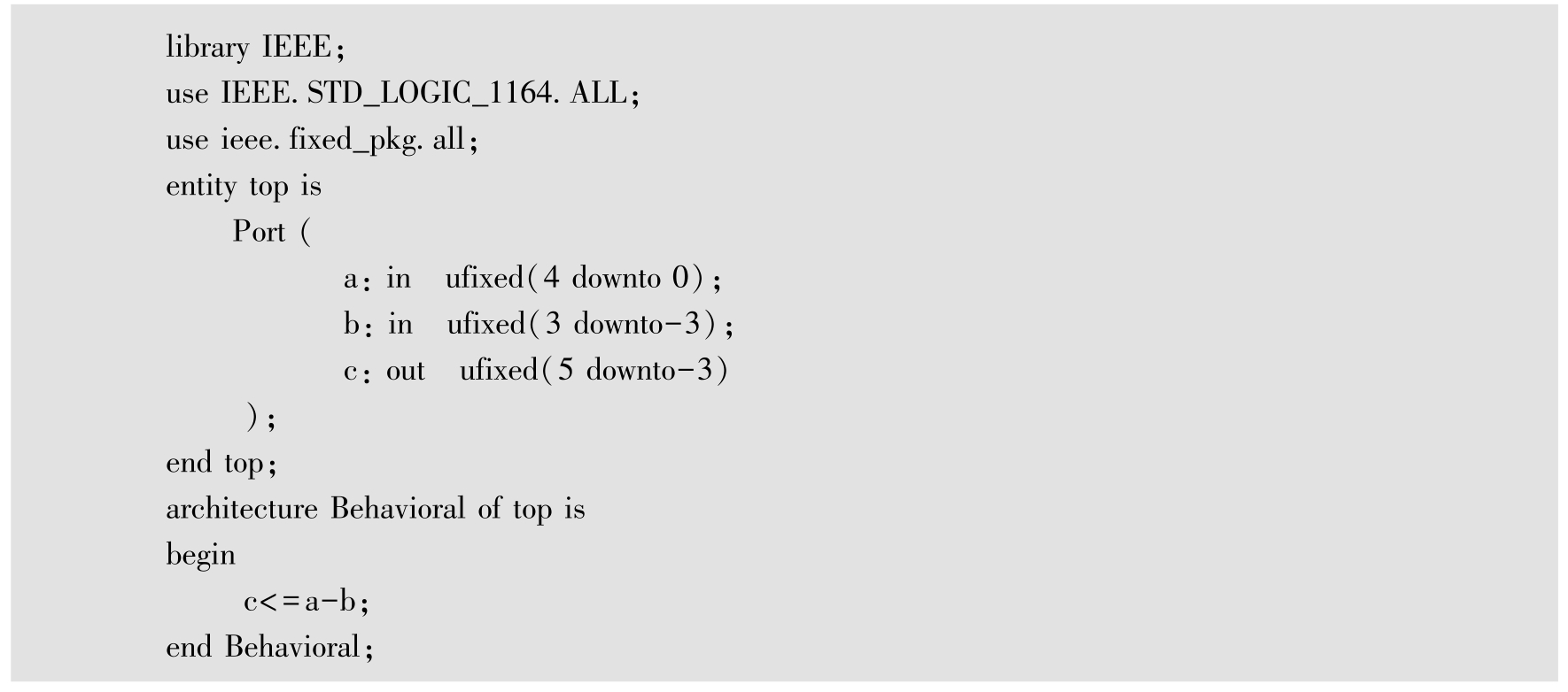 无符号定点数减法运算的VHDL描述如代码清单3-19所示。
