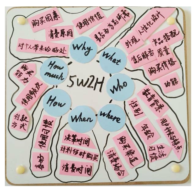5W2H分析法是从结构线索反映事物的构成要素的,应用范围很广。套在用户行为分析上,就是回答谁(Who),在什么时间(When),在什么地点(Where),购买什么东西(What),为什么买(Why),如何买(How),买了多少、花了多少钱、买过多少次(How much)。