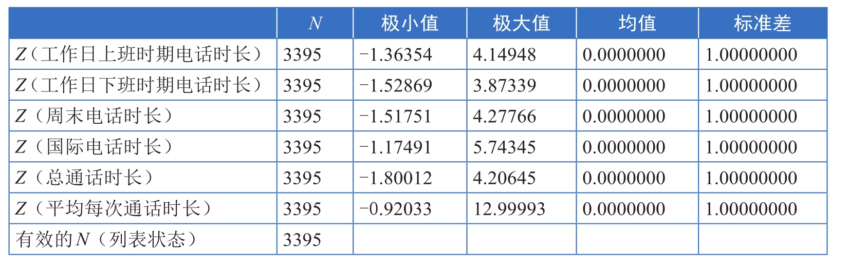 但问题是,现在对手机用户进行分类,依据是各个手机用户距离的远近,而距离远近要用这些变量的数量特征进行刻画,数量太小的变量对分类结果的影响就会很小。比如,对比其他变量,平均每次通话时长的均值太小,它对手机用户分类的影响微乎其微。但事实上,不同人的平均每次通话时长是不一样的,比如闺蜜间或情侣间常常爱“煲电话粥”,而男性或同事之间的通话时间则会短些。平均每次通话时长实际上是影响用户分类的。因此,若直接用这6个变量对手机用户进行分类,就会由于各变量在数量上的不可比造成分类结果的偏差。