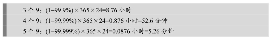 在真实的运营环境下,系统可用性指标每提升1个9都是非常不容易的。