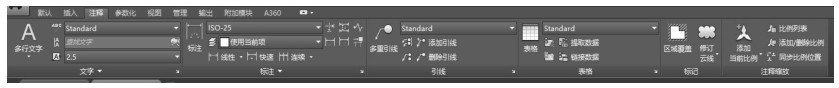 单击功能选项卡中的“注释”选项,功能区将显示如图1-36所示与“注释”相关的命令功能面板。