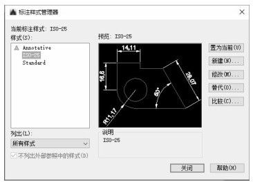 在该选项卡中,主要分为“文字”“标注”及“引线”等几个面板。每个面板的右下角都有一个斜向下的箭头,单击该箭头按钮就可以进入对应的功能区修改对话框。此时,用户便可以根据自己的需求对“文字”“标注”及“引线”的大小、样式等属性进行修改操作,如图1-37~图1-39所示。