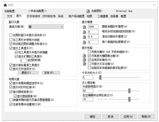 AutoCAD 2018的用户界面可以根据用户的喜好进行一定的设置改变。常见的界面设置有:修改界面各组成部分的背景颜色、调整字体及其大小、改变光标大小等。