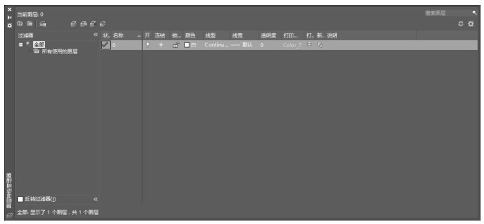 ,打开如图 1-35 所示的“图层特性管理器”对话框。在对话框内部右击选择“新建图层”,便可以新建一个空白图层。一般地,新建的图层名依次为“图层1”“图层2”等,也可以按使用者的要求修改图层名。直接单击选中已有的图层,便可以对该图层进行设置修改操作。