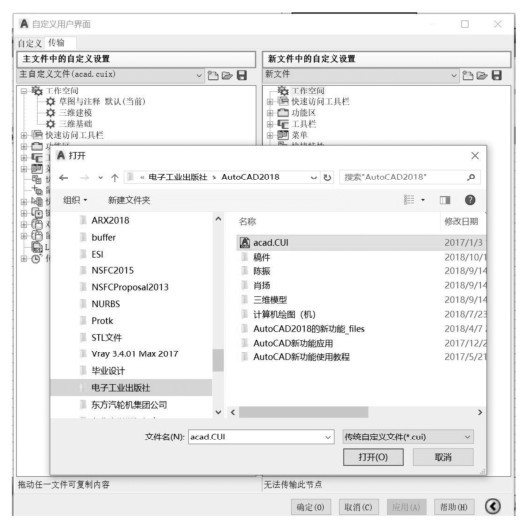 单击“打开”按钮,选择“acad.CUI”文件,如图1-29所示。