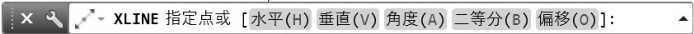 选择构造线的类型。执行第一步操作后,系统命令行会出现图2-13所示的信息,在此提示下输入表示水平线的字母H,然后按Enter键。