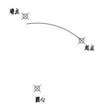 该种方式是通过指定三个点来创建一条圆弧曲线。给定的第一点为圆弧的起点,第二点为圆弧的中间点,第三点为圆弧的终点。