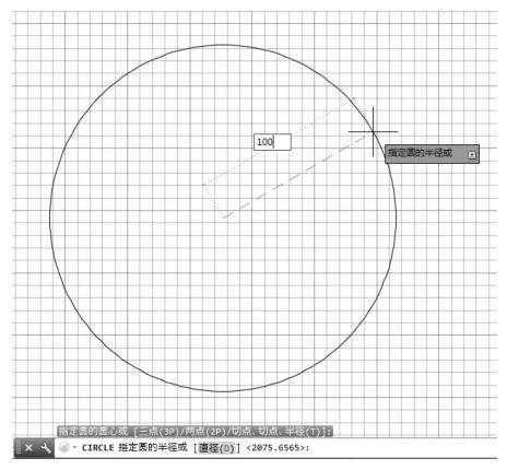 只需要指定圆心后输入半径值,即可创建圆,如图2-20所示。